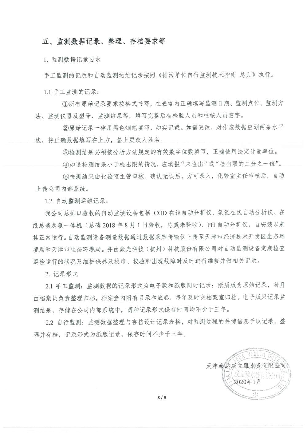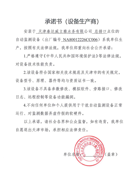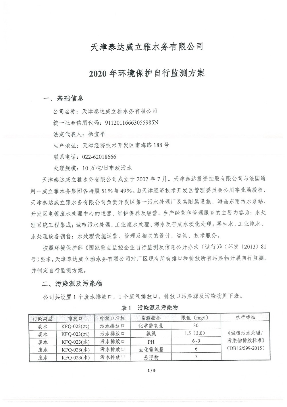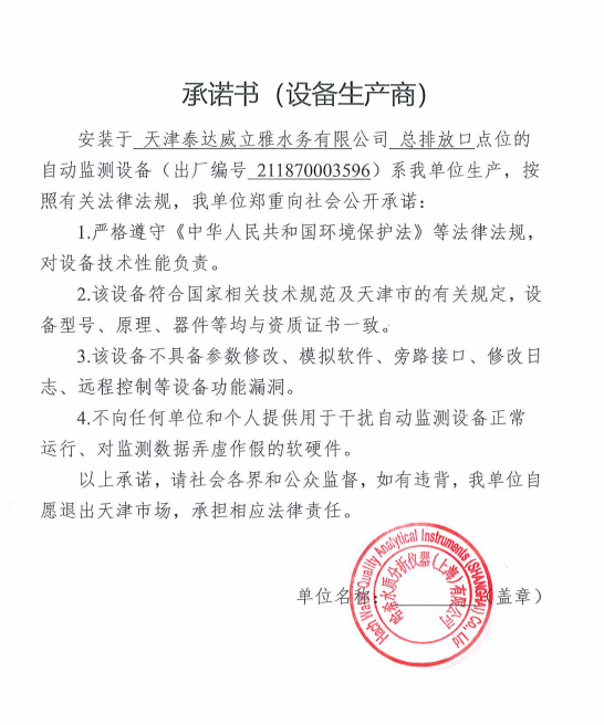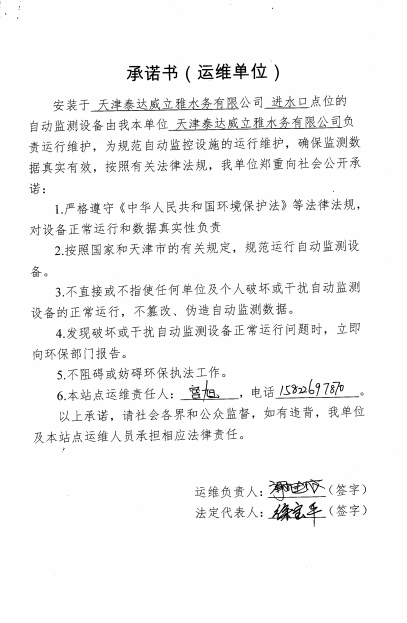 ? 公司出水指標(biāo)數(shù)據(jù)經(jīng)現(xiàn)場數(shù)據(jù)采集儀采集后直接上傳至天津開發(fā)區(qū)環(huán)保局及天津市環(huán)境監(jiān)測中心。天津市環(huán)境監(jiān)測中心直接將接收自公司的上傳數(shù)據(jù)發(fā)送至國家環(huán)保部。實(shí)現(xiàn)了對我公司出水指標(biāo)數(shù)據(jù)的實(shí)時(shí)在線監(jiān)控和監(jiān)督管理。 自2014年,依《國家重點(diǎn)監(jiān)控企業(yè)污染源監(jiān)督性監(jiān)測及信息公開辦法(試行)》,主要污染物排放情況經(jīng)天津市重點(diǎn)企業(yè)自行檢測數(shù)據(jù)發(fā)布系統(tǒng)對外公布,主動(dòng)接受社會(huì)公眾監(jiān)督。 信息發(fā)布平臺(tái) 2025年第3季度環(huán)境信息公開:天津泰達(dá)威立雅水務(wù)有限公司 公司名稱:天津泰達(dá)威立雅水務(wù)有限公司 統(tǒng)一社會(huì)信用代碼:91120116663055985N 法定代表人:徐寶平 生產(chǎn)地址:天津經(jīng)濟(jì)技術(shù)開發(fā)區(qū)南海路188號(hào) 聯(lián)系電話:022-62018666 處理規(guī)模:10萬m3/日市政污水 生產(chǎn)經(jīng)營和管理服務(wù)的主要內(nèi)容: 水處理系統(tǒng)工程集成;城市污水處理、工業(yè)廢水處理、海水及苦咸水淡化處理;再生水、工業(yè)純水、水處理設(shè)備銷售;水處理設(shè)施運(yùn)營、管理及相關(guān)的設(shè)計(jì)、咨詢、技術(shù)服務(wù)。 其他信息: 天津泰達(dá)威立雅水務(wù)有限公司成立于2007年7月。天津泰達(dá)投資控股有限公司與法國通用-威立雅水務(wù)集團(tuán)各持股51%與49%。由天津經(jīng)濟(jì)技術(shù)開發(fā)區(qū)管理委員會(huì)公用事業(yè)局授權(quán),天津泰達(dá)威立雅水務(wù)有限公司負(fù)責(zé)開發(fā)區(qū)第一污水處理廠及其附屬設(shè)施、海晶東雨污水泵站、開發(fā)區(qū)電鍍廢水處理中心的運(yùn)營、維護(hù)保養(yǎng)及經(jīng)營。 項(xiàng)目(出水) 平均值(mg/L) A標(biāo)準(zhǔn)(DB12/599-2015) (mg/L) 化驗(yàn)次數(shù)(次) 合格率(%) 我公司排放口數(shù)量為一個(gè),位于廠區(qū)東南側(cè)。處理后出水排入市政專用排污管道,經(jīng)北排泵站排入渤海灣。2025年7-9月我公司COD、氨氮、總氮、總磷排放總量如下: 148.28 天津泰達(dá)威立雅水務(wù)有限公司為原天津經(jīng)濟(jì)技術(shù)開發(fā)區(qū)污水處理廠,是天津?yàn)I海新區(qū)第一座污水處理廠,位于開發(fā)區(qū)南海路與第十二大街交口處,污水處理項(xiàng)目投資總額3.5534億元人民幣,占地8.1公頃,設(shè)計(jì)能力為日處理污水10萬m3,其中市政污水的比例高于60%。污水處理工藝目前采用“預(yù)處理+SBR+反硝化濾池+臭氧催化高級氧化+紫外消毒”。脫水機(jī)房、進(jìn)水泵房、預(yù)處理單元和儲(chǔ)泥池的臭氣經(jīng)過收集管道收集進(jìn)入生物過濾塔除臭處理。剩余污泥經(jīng)脫水機(jī)脫水處理,泥餅外運(yùn)處理。工藝系統(tǒng)由在線儀器儀表輸送到中控室實(shí)現(xiàn)自動(dòng)控制。 出水水質(zhì)達(dá)到天津市《城鎮(zhèn)污水處理廠污染物排放標(biāo)準(zhǔn)》(DB12/599-2015)A排放標(biāo)準(zhǔn)。廠界噪聲均滿足《工業(yè)企業(yè)廠界噪聲標(biāo)準(zhǔn)》GB12348-2008(3類)晝、夜標(biāo)準(zhǔn)值。廠界無組織排放廢氣中臭氣濃度、氨、硫化氫濃度均符合《惡臭污染物排放標(biāo)準(zhǔn)》(GB12/059-2018)限值要求。 開發(fā)區(qū)第一污水處理廠現(xiàn)狀主要的大氣影響來自預(yù)處理單元(格柵與沉砂池)和污泥區(qū)(污泥脫水機(jī)房)的惡臭氣體。污泥脫水機(jī)房、污泥料倉、三合一泵房等設(shè)施產(chǎn)生的臭氣集中收集,儲(chǔ)泥池、預(yù)處理單元等采用加罩密閉設(shè)計(jì),臭氣集中收集至生物除臭裝置,除臭效率不低于80%,處理后由15米高排氣筒達(dá)標(biāo)排放。根據(jù)天津市環(huán)保局《關(guān)于天津開發(fā)區(qū)第一污水處理廠改造工程環(huán)境影響報(bào)告書的批復(fù)》,開發(fā)區(qū)第一污水處理廠的衛(wèi)生防護(hù)距離設(shè)為100m。 污水廠廢氣監(jiān)測結(jié)果表明,廠區(qū)周界監(jiān)測點(diǎn)位臭氣濃度均低于20(無量綱),符合《惡臭污染物排放標(biāo)準(zhǔn)(GB12/059-2018)的標(biāo)準(zhǔn)要求。 開發(fā)區(qū)第一污水處理廠污水經(jīng)處理后達(dá)到天津市《城鎮(zhèn)污水處理廠污染物排放標(biāo)準(zhǔn)》(DB12/599-2015)A排放標(biāo)準(zhǔn)要求。污水處理廠工藝過程本身沒有生產(chǎn)性廢水排放,所排污水主要為生活污水和污泥處理水,這部分廢水一同返回本污水處理廠的進(jìn)水泵房,與市政污水一并處理。2025年7-9月出水達(dá)標(biāo)率為100%,無超標(biāo)情況。 開發(fā)區(qū)第一污水處理廠主要的噪聲設(shè)備為鼓風(fēng)機(jī),鼓風(fēng)機(jī)位于鼓風(fēng)機(jī)房,并設(shè)置隔音減震措施,其噪聲影響甚微。 監(jiān)測結(jié)果:廠界噪聲共設(shè)置4個(gè)噪聲監(jiān)測點(diǎn),執(zhí)行《工業(yè)企業(yè)廠界環(huán)境噪聲排放標(biāo)準(zhǔn)》(GB12348-2008)3類標(biāo)準(zhǔn),根據(jù)監(jiān)測結(jié)果,各廠界處噪聲均符合執(zhí)行標(biāo)準(zhǔn)要求。 污水廠運(yùn)行過程中產(chǎn)生的固體廢棄物主要為柵渣、沉砂、污泥及生活垃圾。生活垃圾和柵渣交由開發(fā)區(qū)環(huán)衛(wèi)綜