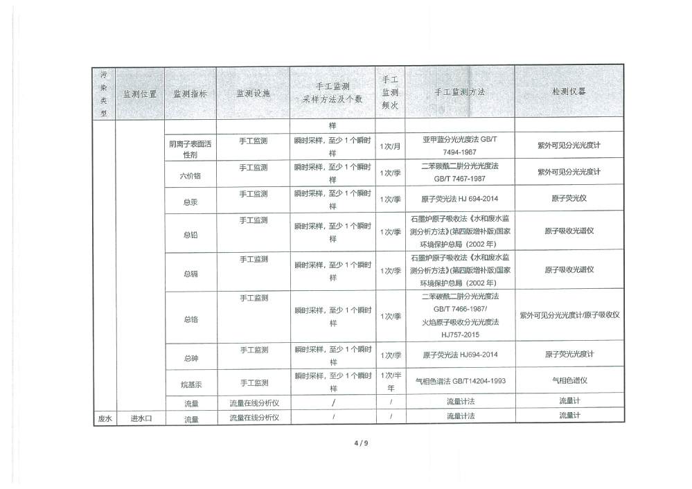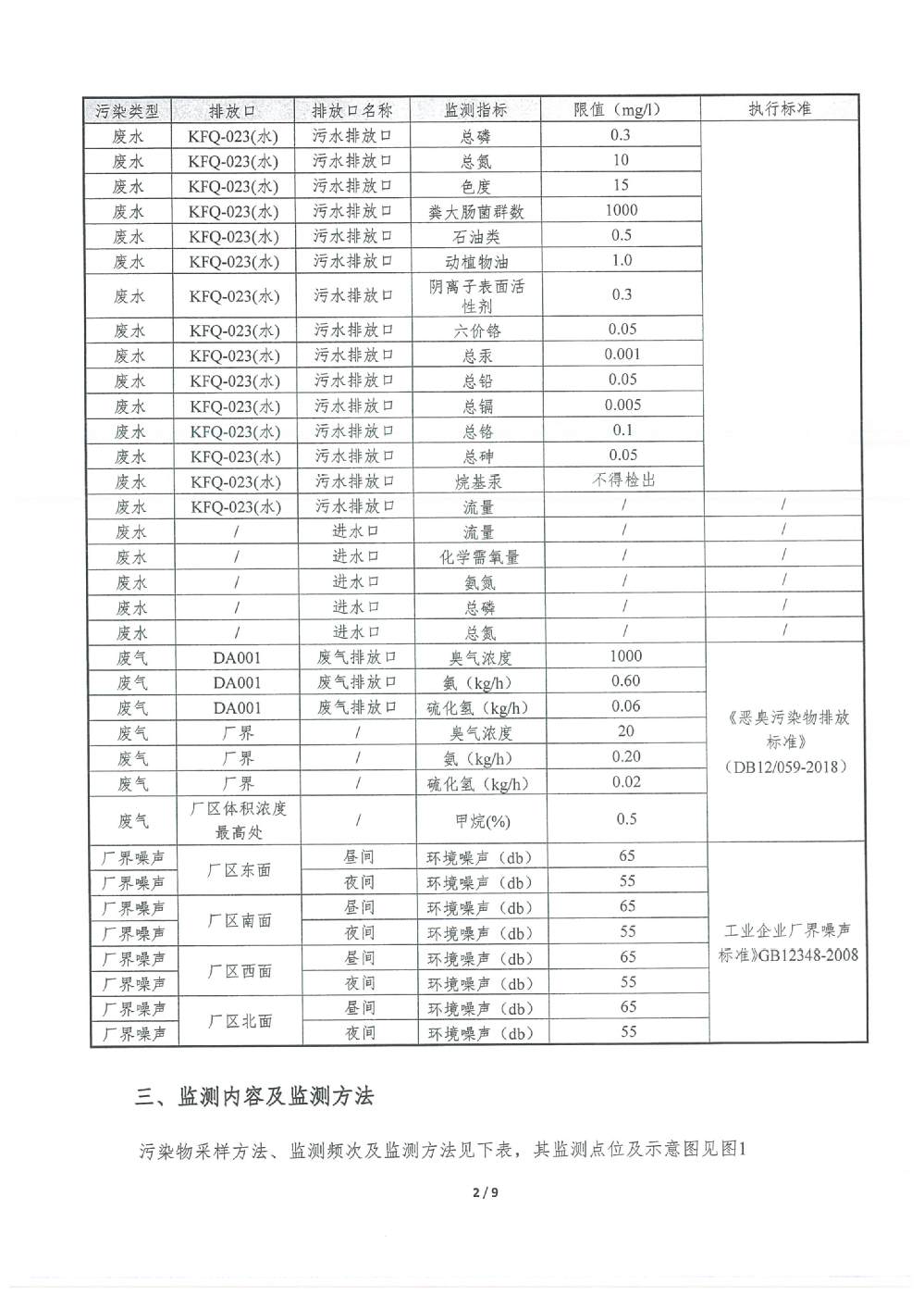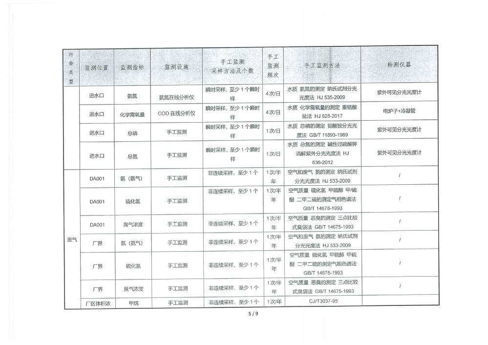 PH 6.83 6-9 92 100 COD 17.49 30 92 100 BOD5 2.29 6 92 100 SS 2.49 5 92 100 TP 0.15 0.3 92 100 TN 6.21 10 92 100 NH4-N 0.30 1.5(3.0) 92 100 色度 2.00 15 92 100 糞大腸菌群 48.43 1000 92 100 石油類 0.030 0.5 3 100 動(dòng)植物油 0.060 1.0 3 100 陰離子表面活性劑 0.214 0.3 3 100 六價(jià)鉻 0.002 0.05 1 100 總鉻 0.015 0.1 1 100 總鎘 0.00221 0.005 1 100 總砷 0.0018 0.05 1 100 總鉛 0.004 0.05 1 100 總汞 0.0038 0.001 1 100 出水達(dá)標(biāo)率100% 2025年3季度 排放量(噸) 1 化學(xué)需氧量 2 氨氮(NH3-N) 2.54 3 總氮(以N計(jì)) 52.65 4 總磷(以P計(jì)) 1.27 3.防治污染設(shè)施的建設(shè)和運(yùn)行情況